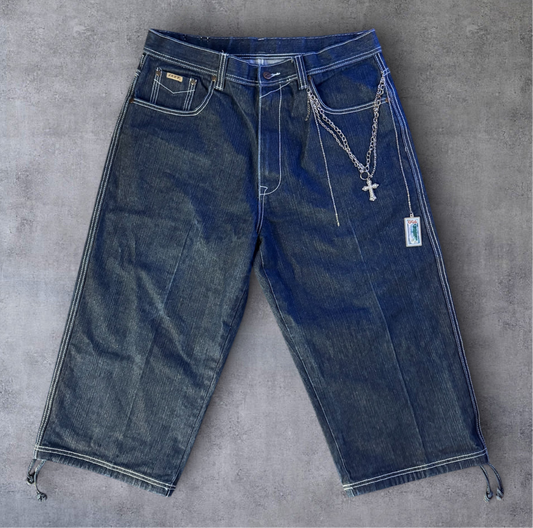 black sourced wrangler jorts
