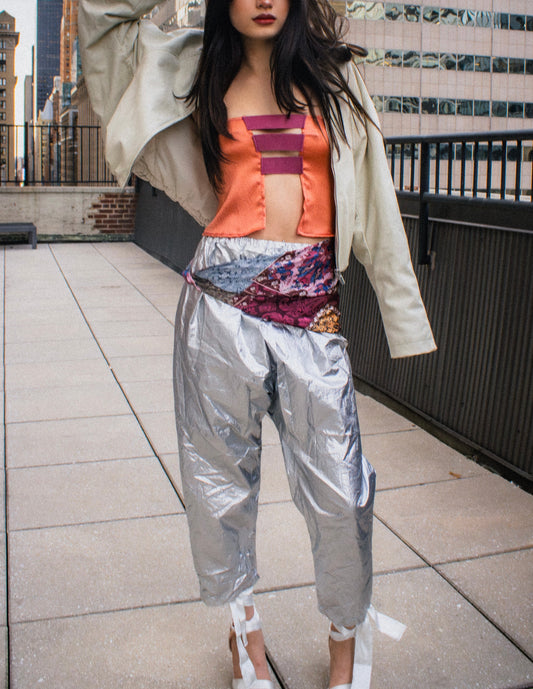 coral hammered silk strapless top