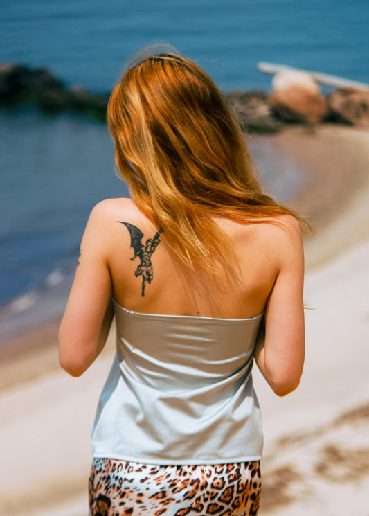 frost metallic strapless stud top