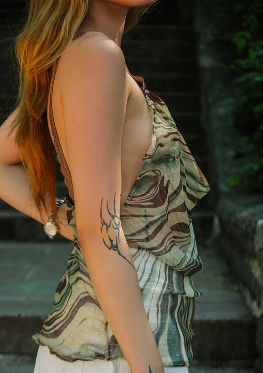 sage silk cowl neck tank